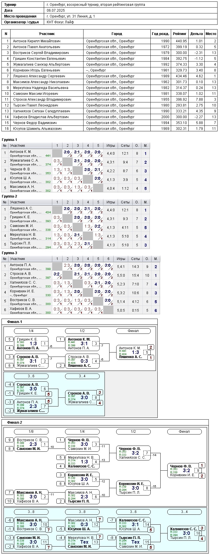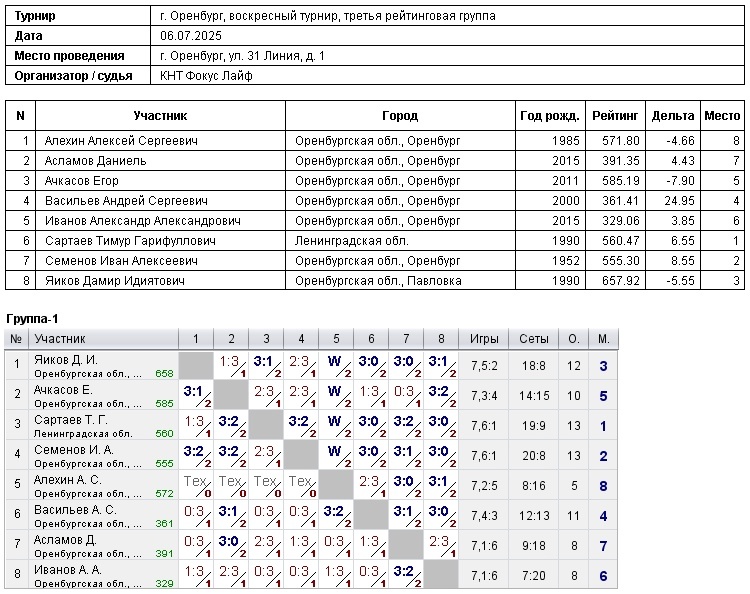 Воскресный турнир «Фокус Лайф» 6.07.2025