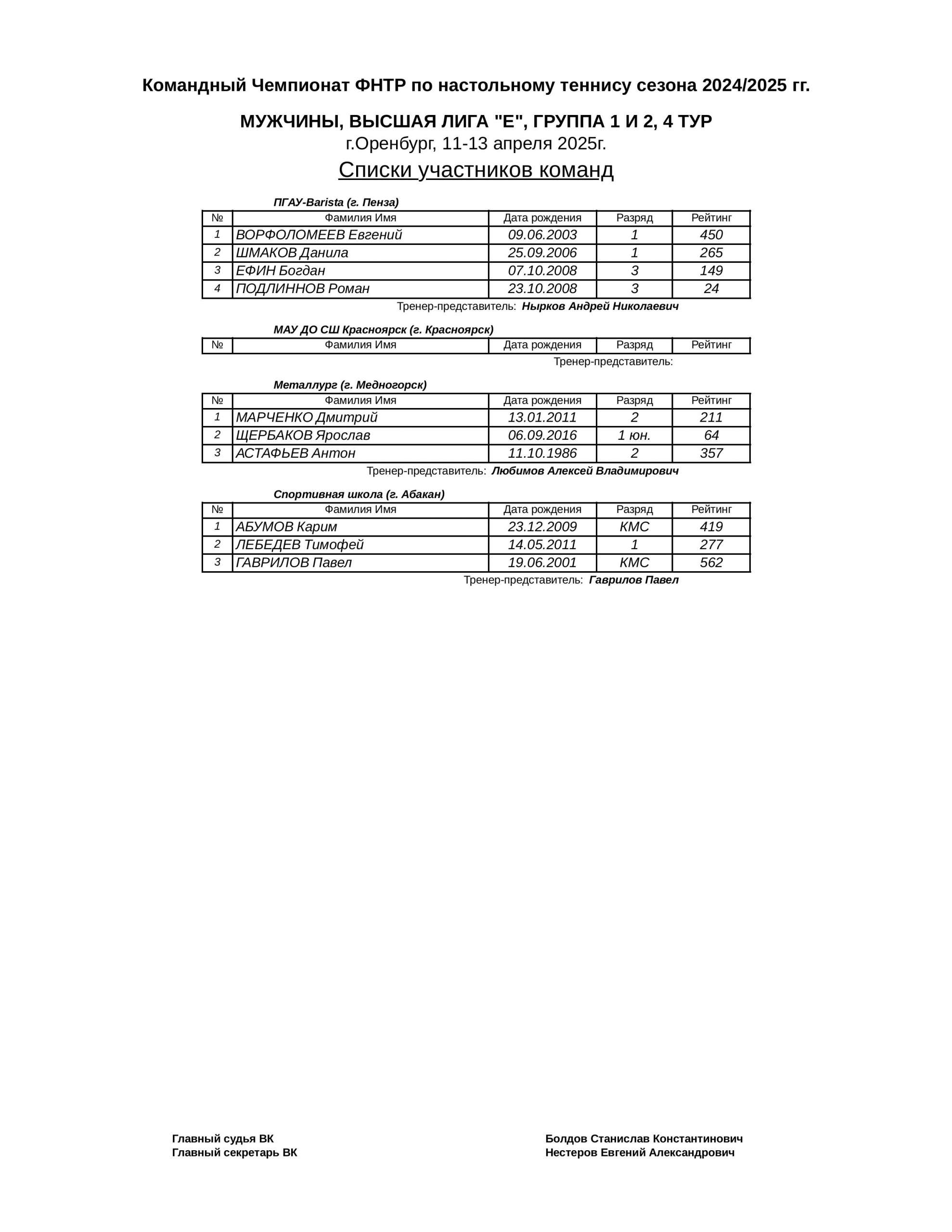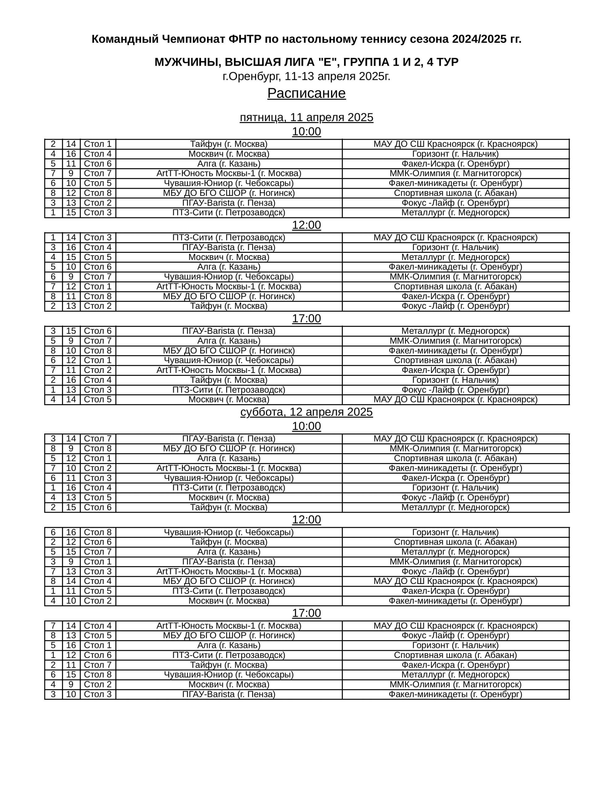 Расписание.
