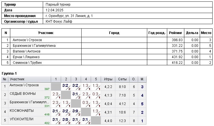 В  КНТ Фокус Лайф завершился парный турнир. Сегодня в нем приняли участие 5 команд: