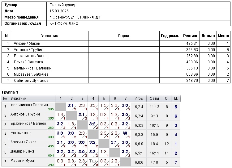 В КНТ Фокус Лайф завершился парный турнир. Сегодня приняли участие 7 команд: