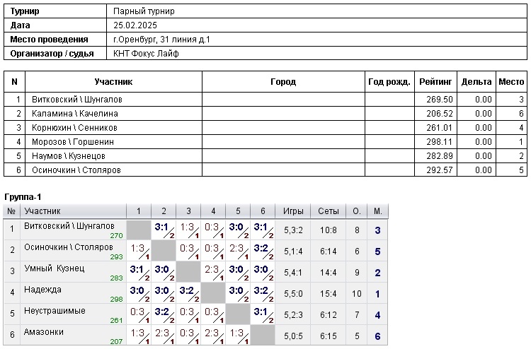 В КНТ Фокус Лайф завершился парный турнир. Сегодня приняли участие 6 команд :