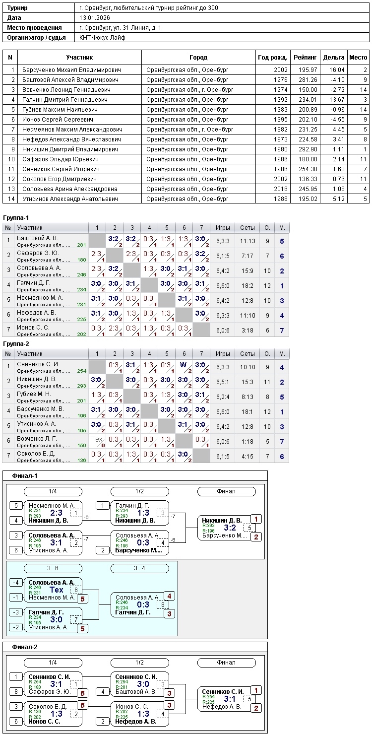В КНТ Фокус Лайф завершился любительский турнир, рейтинг игроков до 300, приняли участие 14 спортсменов. Победителями стали:1 – Никишин Дмитрий;2 – Барсученко Михаил;3 – Галчин Дмитрий Поздравляем победителей!!!