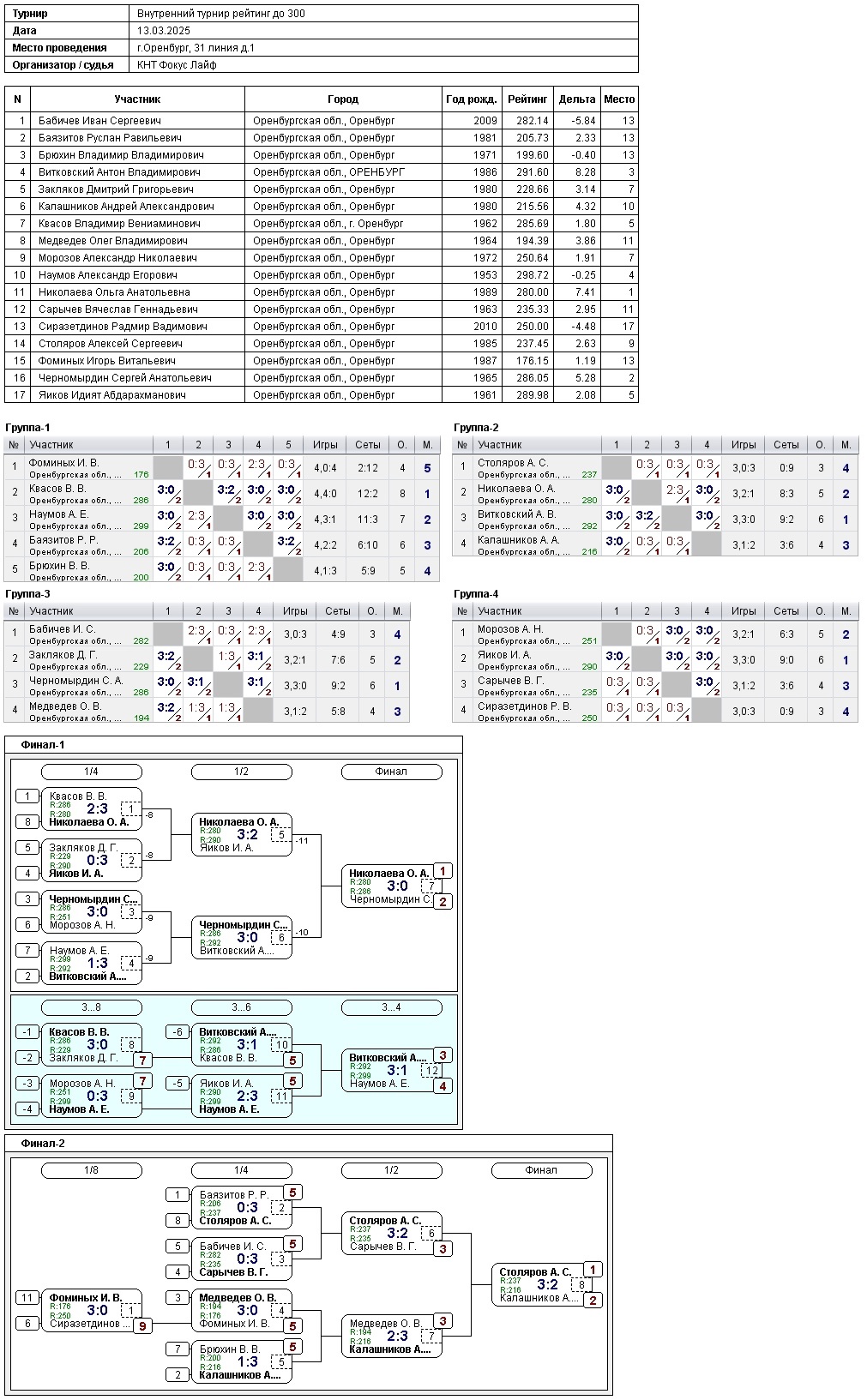 Сегодня в турнире игроков с рейтингом до 300 приняли участие 17 спортсменов.