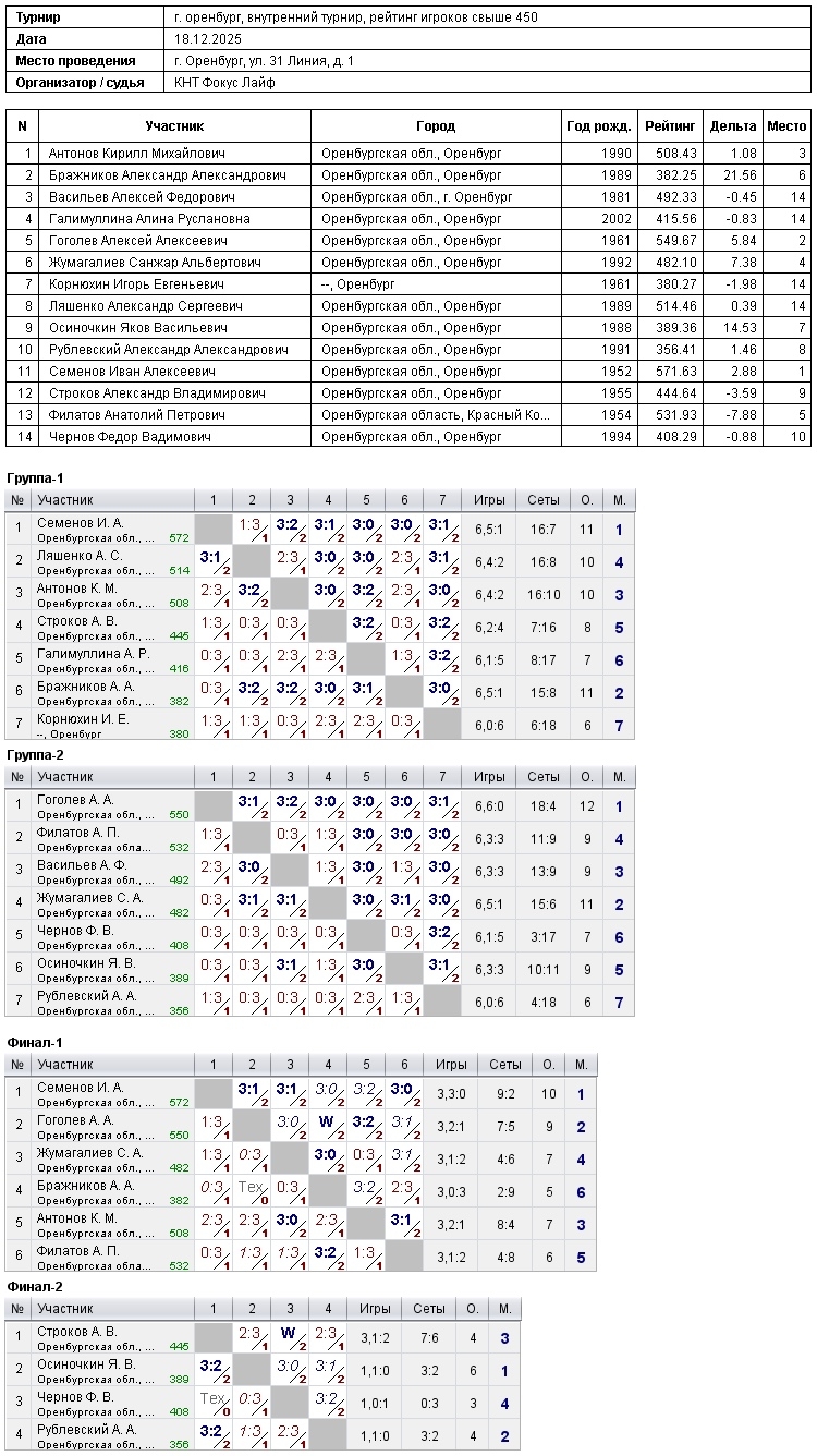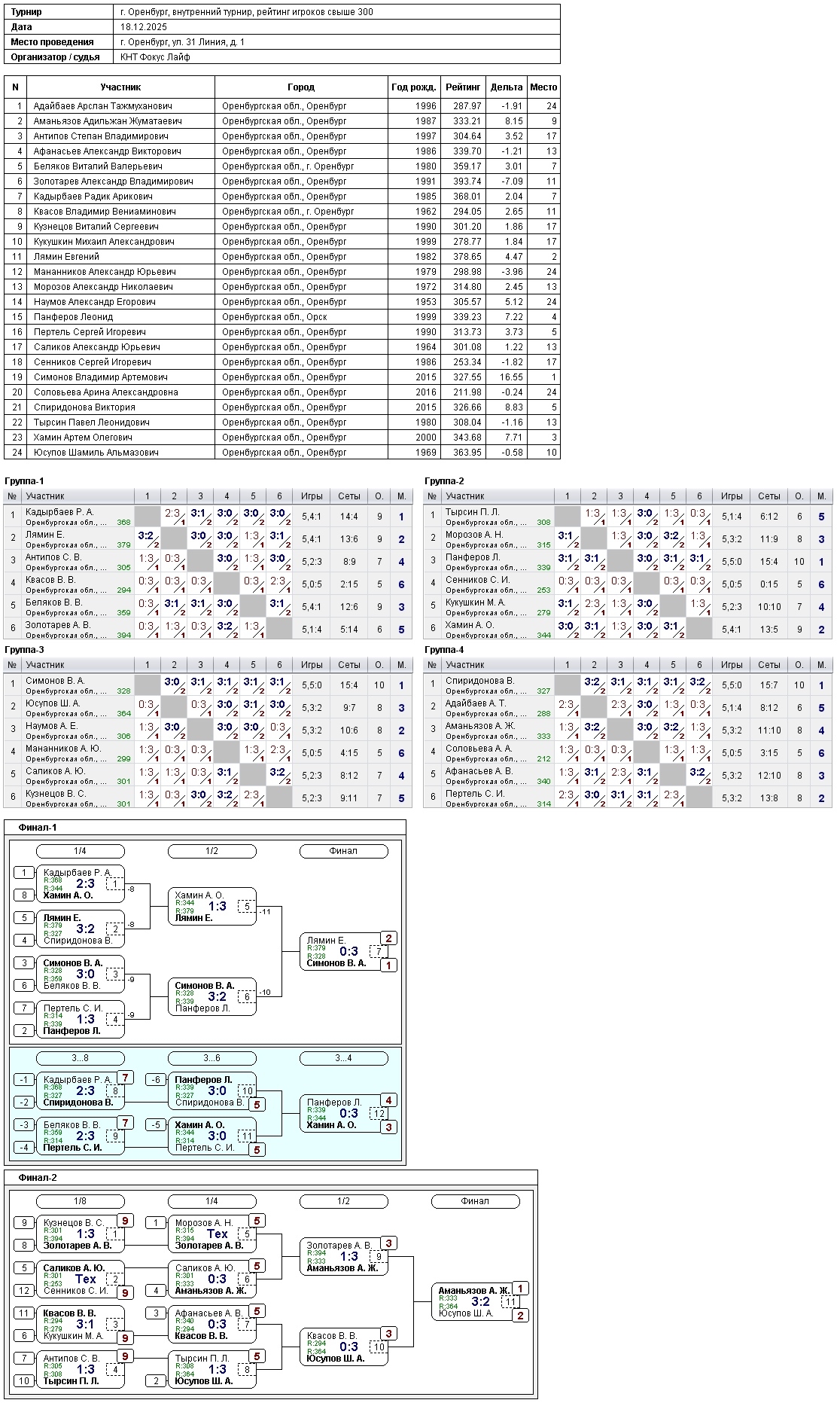 Внутренний турнир «Фокус Лайф» 18.12.2025