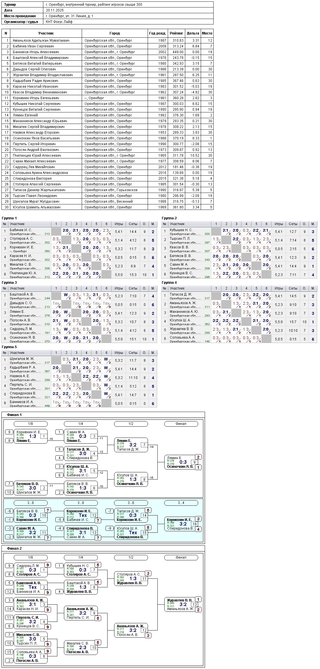Внутренний турнир «Фокус Лайф» 20.11.2025