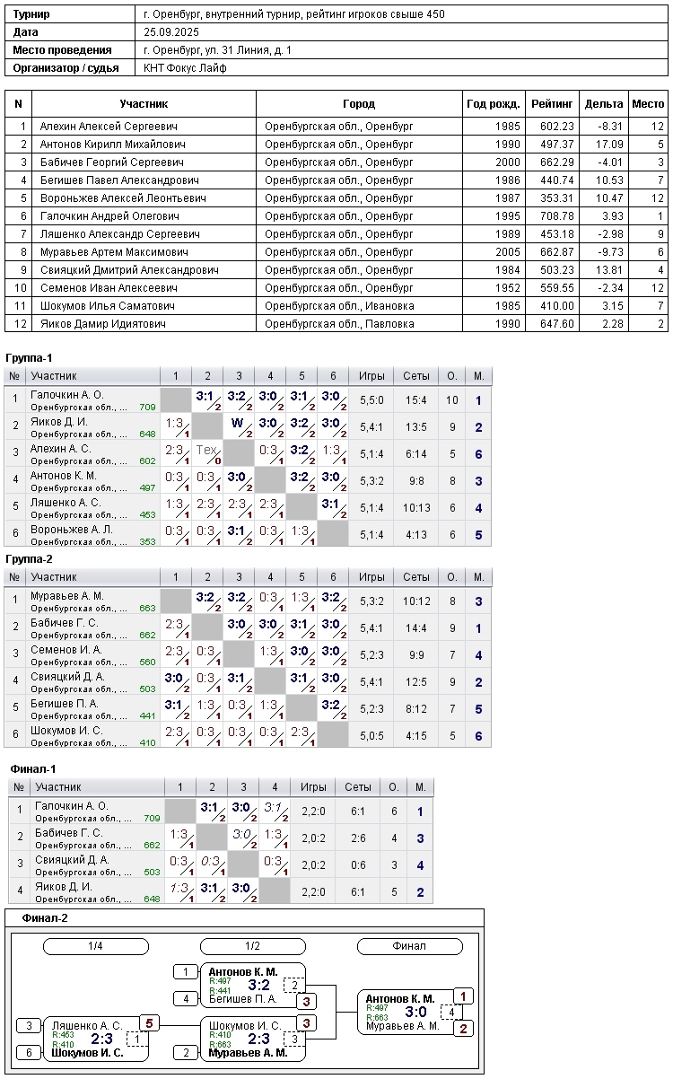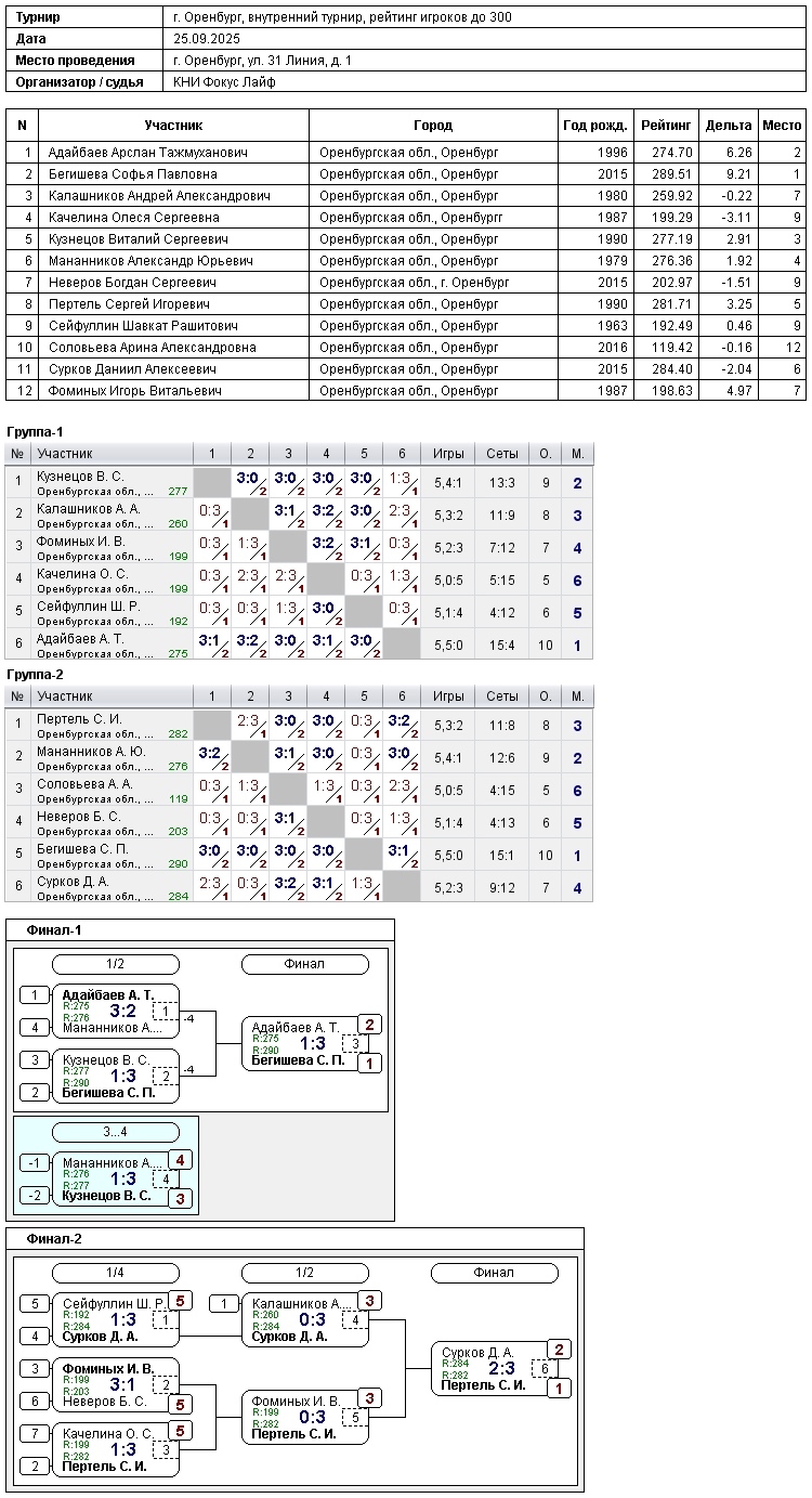 Внутренний турнир «Фокус Лайф» 25.09.2025