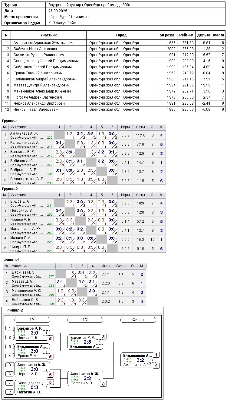 Внутренний турнир «Фокус Лайф» 27.03.2025