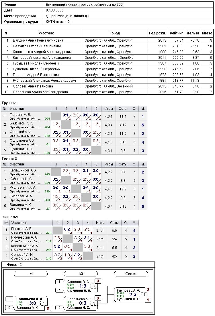 Сегодня в турнире игроков, рейтинг до 300, приняли участие 10 спортсменов.