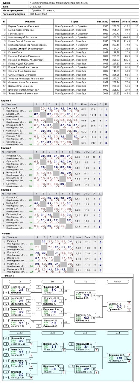 Воскресный турнир «Фокус Лайф» 1.02.2026