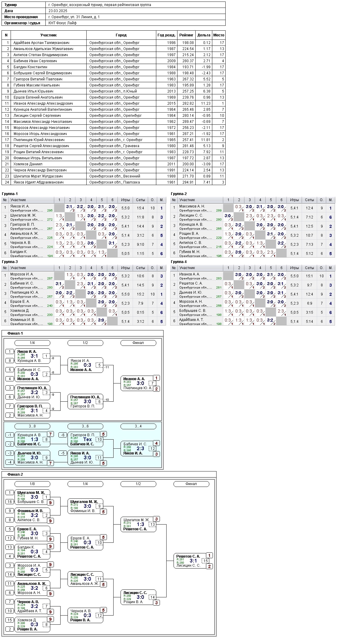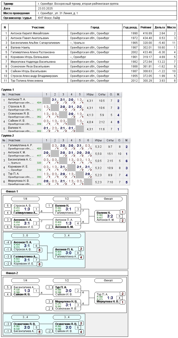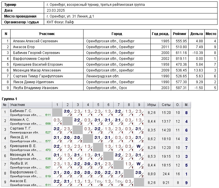 Воскресный турнир «Фокус Лайф» 23.03.2025