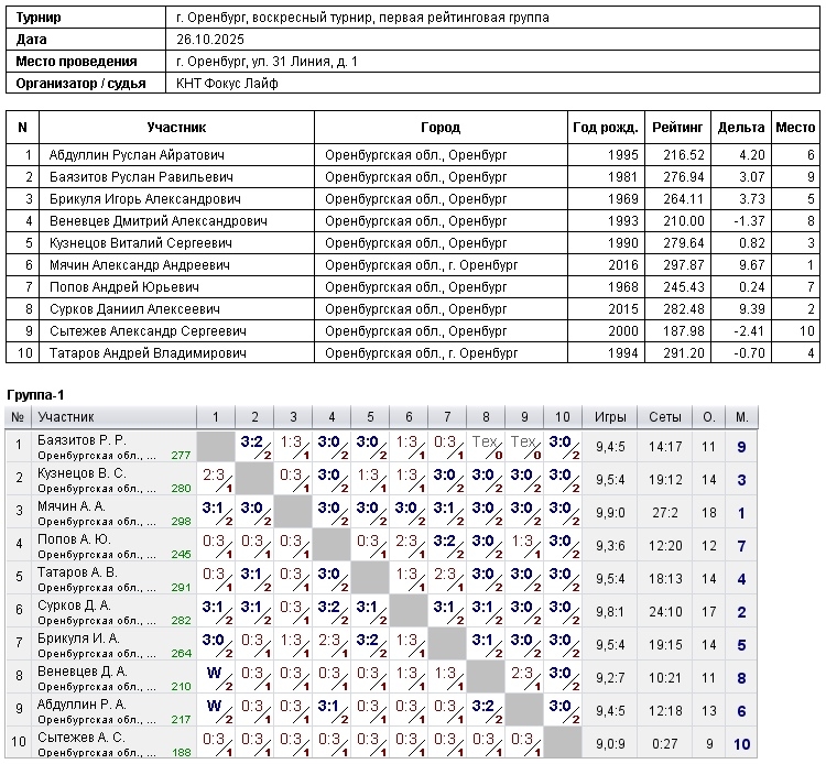 Сегодня в турнире игроков, рейтинг до 300, приняли участие 10 спортсменов.