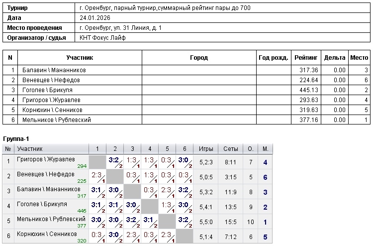 В связи с турнирами по настольному теннису в Оренбургской области многие участники не смогли присутствовать на парном турнире сегодня в КНТ Фокус Лайф. Для оптимизации игрового процесса мы приняли решение объединить 2 субботних парных турнира.