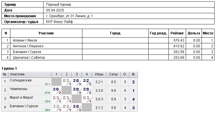 2 – «Чемпионы»  – Алехин Алексей/Яиков Дамир;