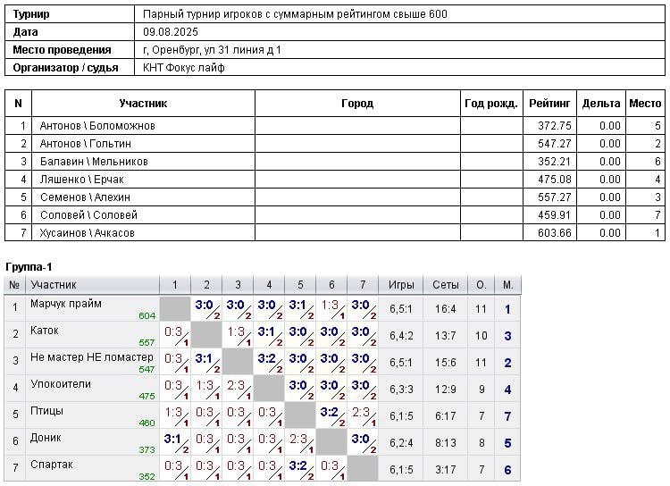 В КНТ Фокус Лайф завершился субботний парный турнир. Сегодня приняли участие 7 команд: