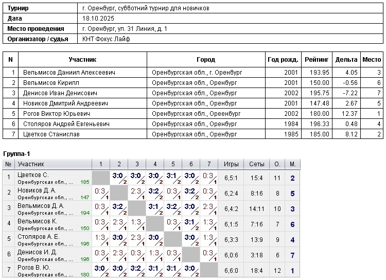 Турнир для новичков, с рейтингом игроков до 200 18.10.2025