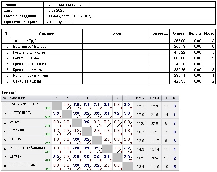 Субботний турнир «Фокус Лайф» 15.02.2025